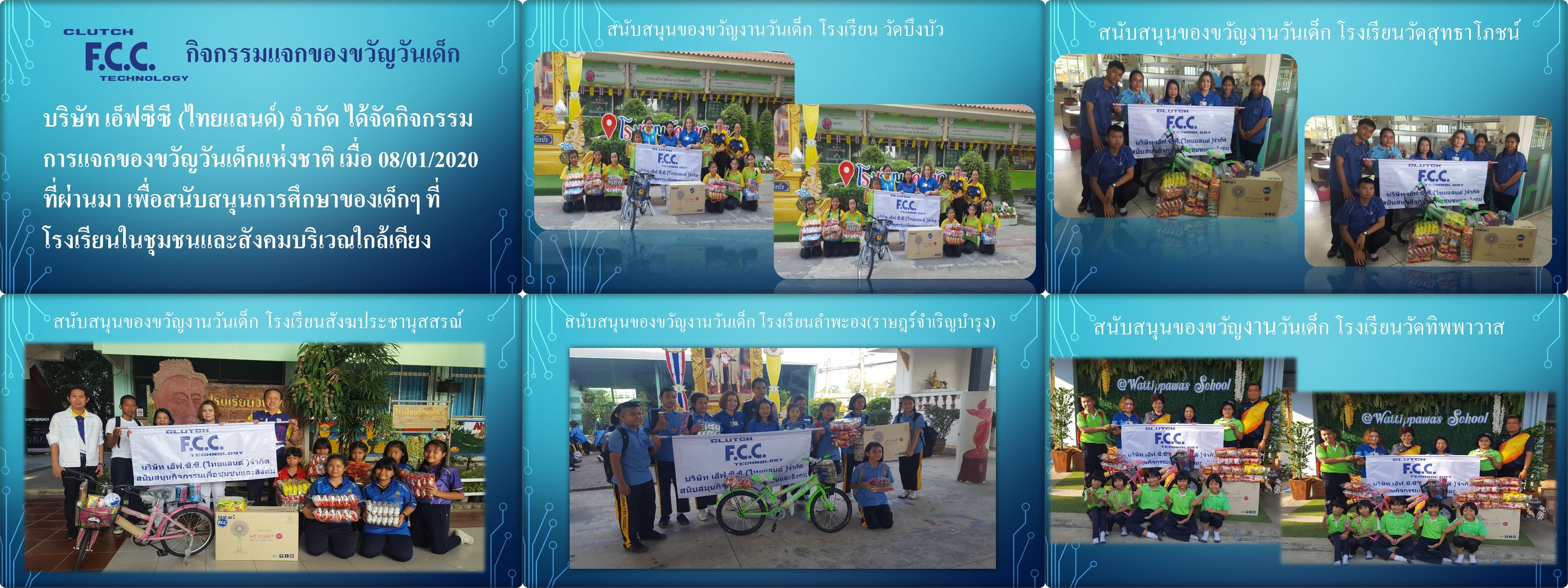 บริษัท เอ็ฟซีซี (ไทยแลนด์) จำกัด ได้จัดกิจกรรมการแจกของขวัญวันเด็กแห่งชาติ เมื่อ 08/01/2020 ที่ผ่านมา เพื่อสนับสนุนการศึกษาของเด็กๆ ที่โรงเรียนบริเวณใกล้เคียง ดูเพิ่มเติม