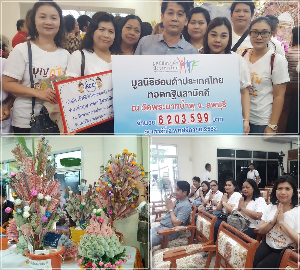 บริษัท เอ็ฟซีซี (ไทยแลนด์) จำกัด สาขานิคมอมตะซิตี้ชลบุรี ได้เข้าร่วมทำบุญ ทอดกฐินสำมัคคี ณ วัดมำบสำมเกลียว เมื่อ 08/11/2562 ที่ผ่านมา ดูเพิ่มเติม