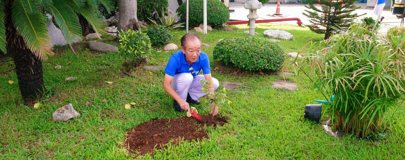 นาย ฮิโรทะกะ อิชิซูยะ ท่านประธาน บริษัท เอ็ฟซีซี (ไทยแลนด์) จำกัด ปลูกต้นรวงผึ้งแม้จะไม่ใช่ไม้ยืนต้นขนาดใหญ่ แต่ก็ช่วยบังแดดและให้ร่มเงาได้ดี รูปลักษณะและสีสันสวยงาม ... ดูเพิ่มเติม